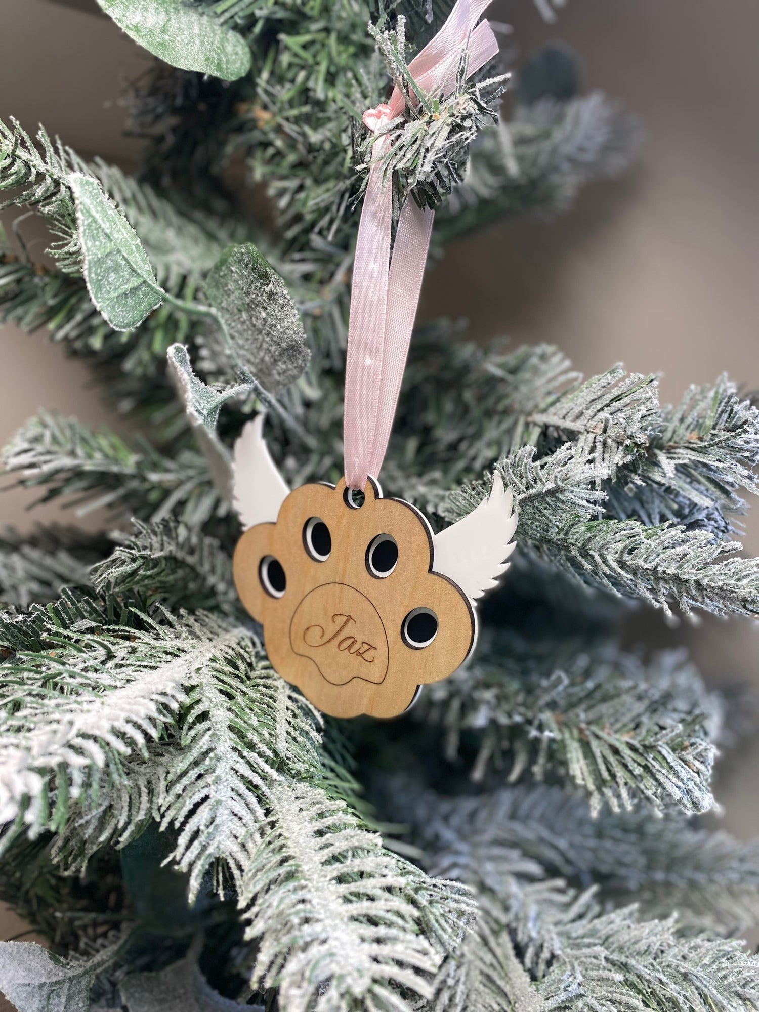they come engraved with one name. - more names or dates will be at an additional cost. - each paw is custom made to order and each piece of timber is different, each paw will vary in colour and grain, this makes them all unique. while we will do our best to match the colour ribbon to the pets name, if you do have a special request for either Pink, Blue or White - please put that in the "special Notes' area along with the pets name you would like personalised.