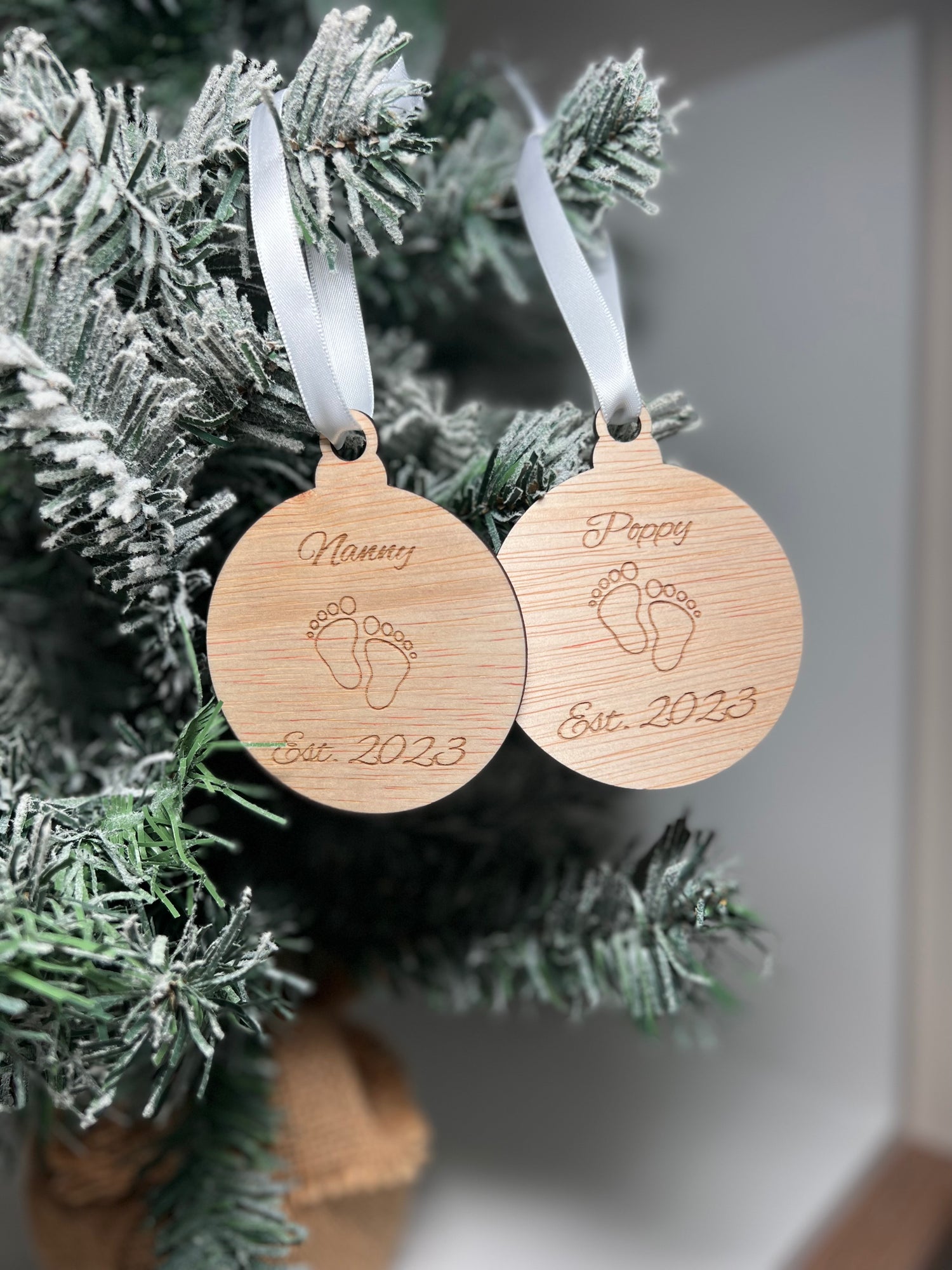 These baby announcement baubles are 9cm tall. They come personalised in any of the listed designs, or 1 name of your choice. Please message me to arrange custom wording.