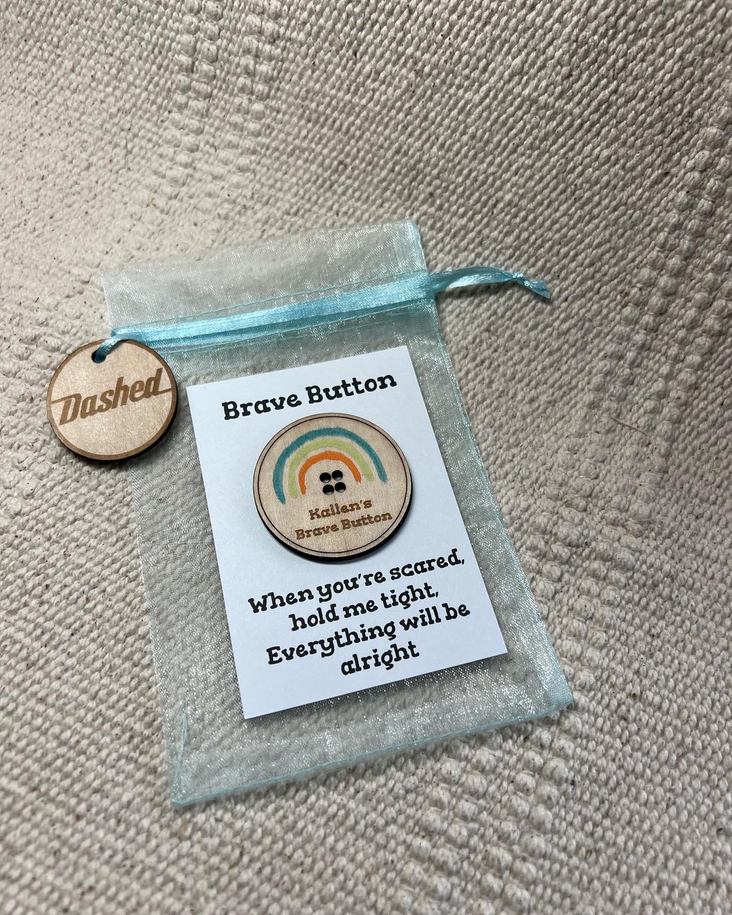 Our personalised brave pocket buttons are designed to help kids deal with their anxiety and worries of going back to school. They are pocket sized at just 4cm diameter.