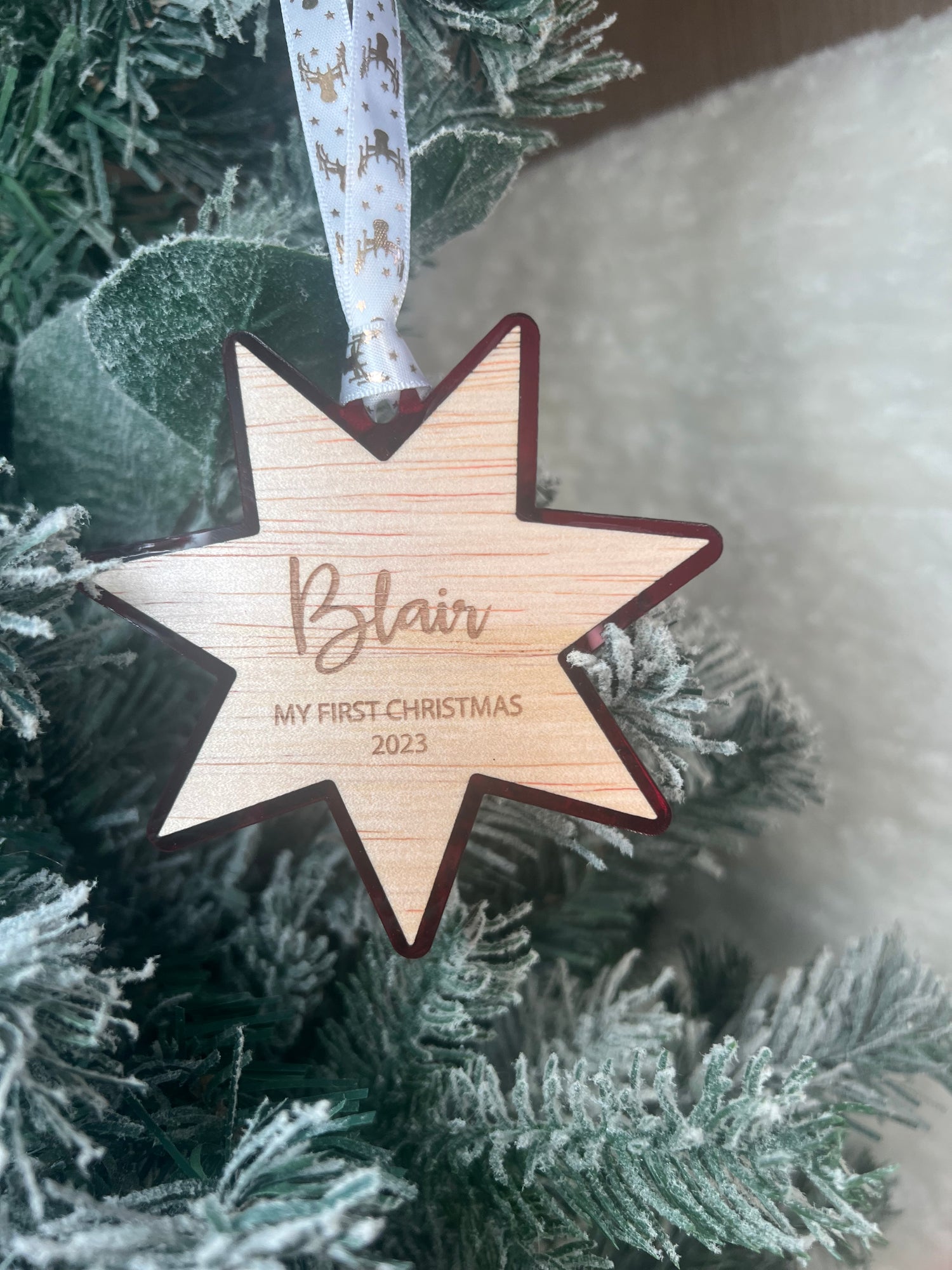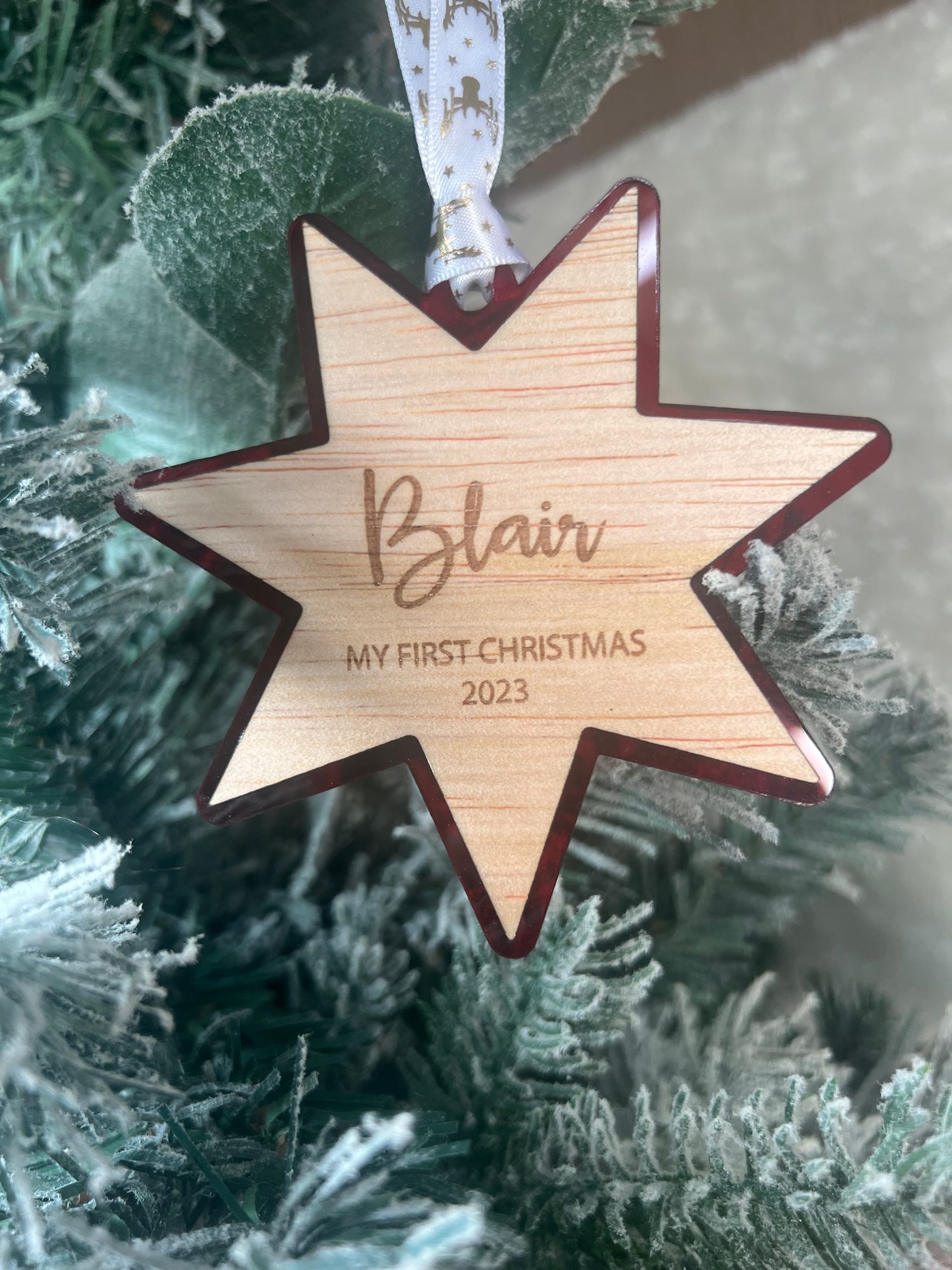 engraved with a name of your choice. “My First Christmas” included if you wish.