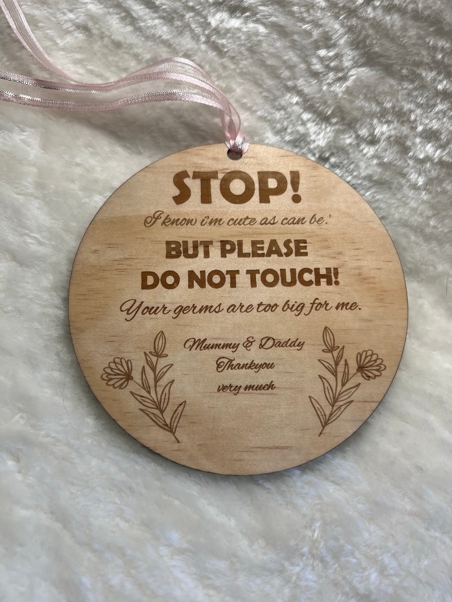 This sign is 10cm diameter. These are made from plywood, they are engraved. Each one is made to order, you can expect some variation in each one due to the timber grain. We can customize these to suit your own preferences. Please message me for a quote on a custom piece.