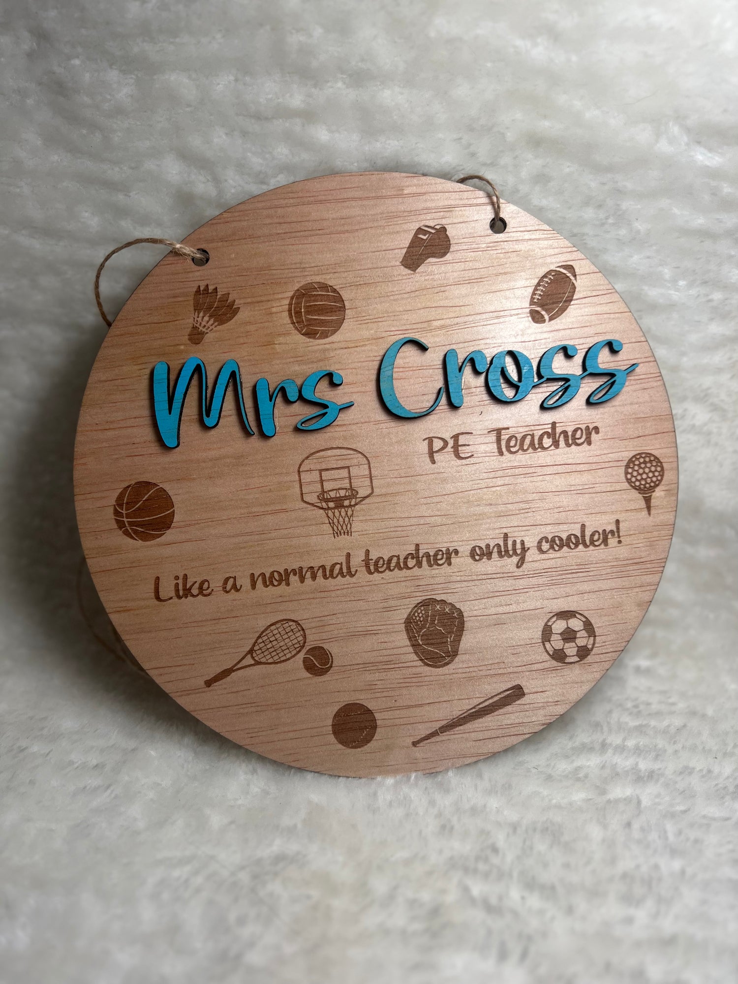 This custom teacher / coach sign is the perfect gift for any teacher or coach. customised with your teachers name. We can also offer smaller or larger options for different prices, please message me if you would like a quote for a different size. this one is 20cm diameter.