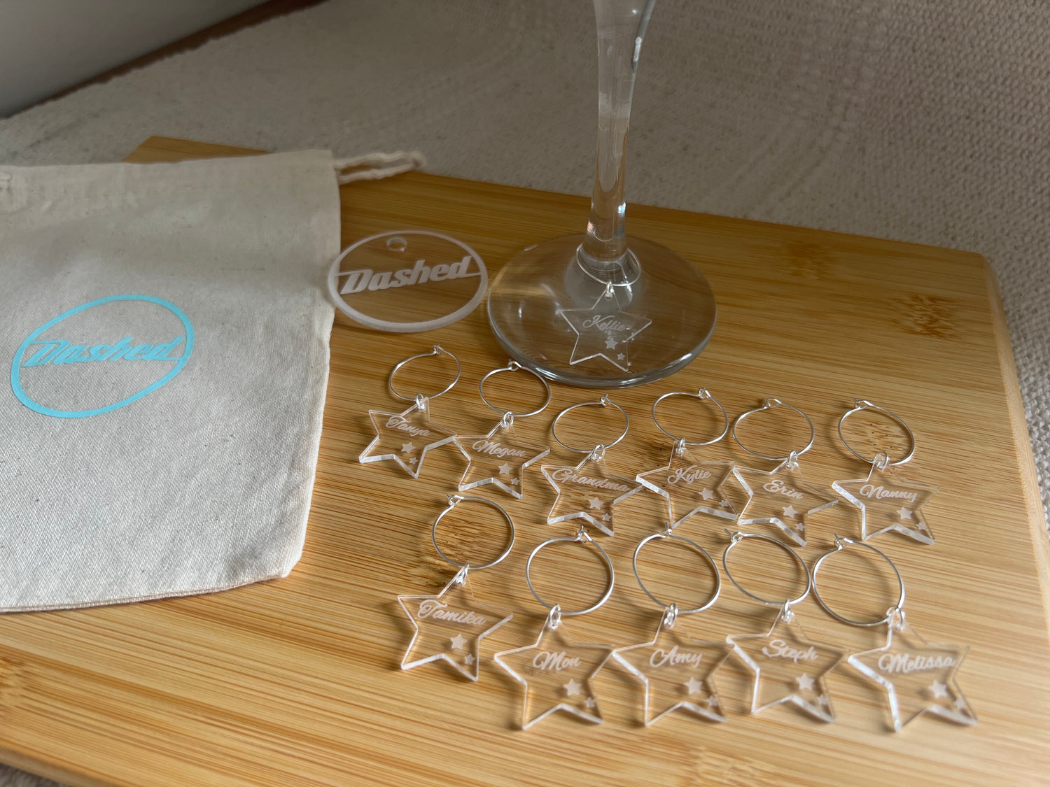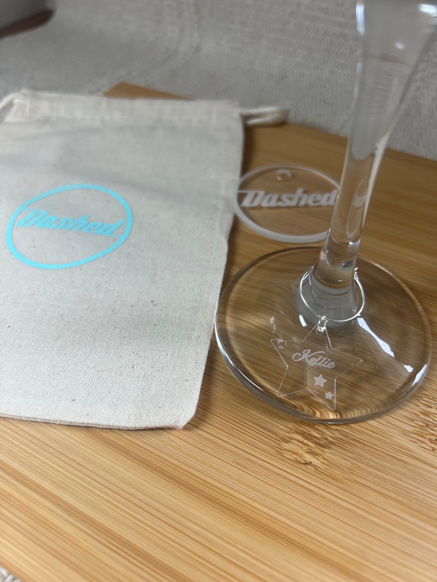 These elegant wine glass charms are 2.5cm tall, they come engraved with 1 name and the option of 2 engraved stars or without if you prefer.